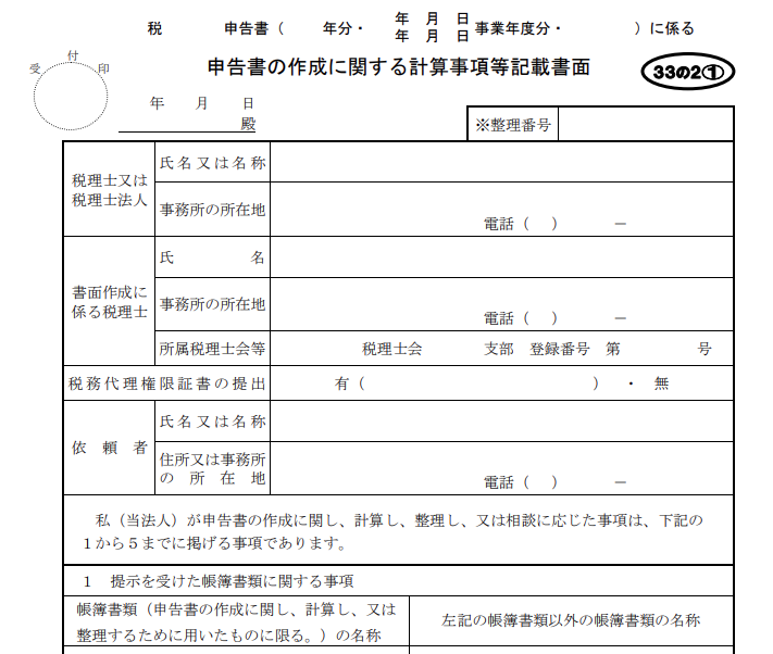 - 税理士法33条の2の書面添付制度(税務リスク低減)